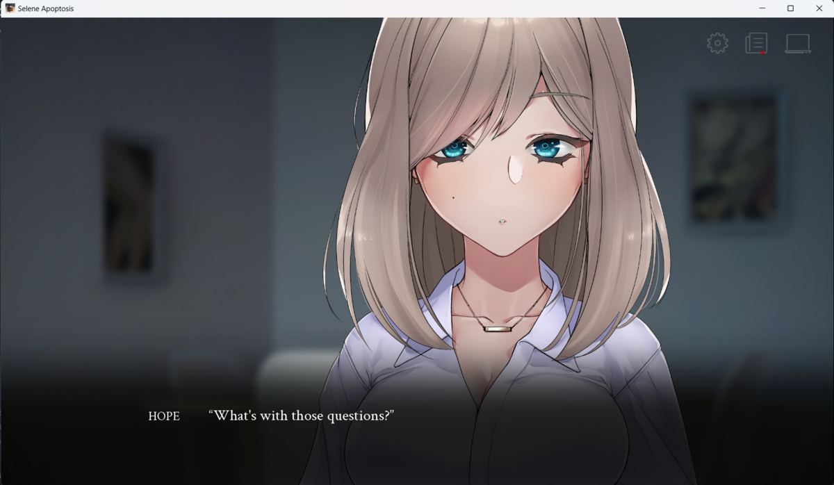 また、序盤でSeleneを家に入れずに拒絶する選択肢を選んだ場合、本来であればエンディング1に到達するようなのですが、なぜかそうはなりません。厳密にはここはそういう演出なのか、単なるバグなのか不明ですが、エンディングを迎えることなく彼女を受け入れたものとしてシナリオは続いてしまいます。