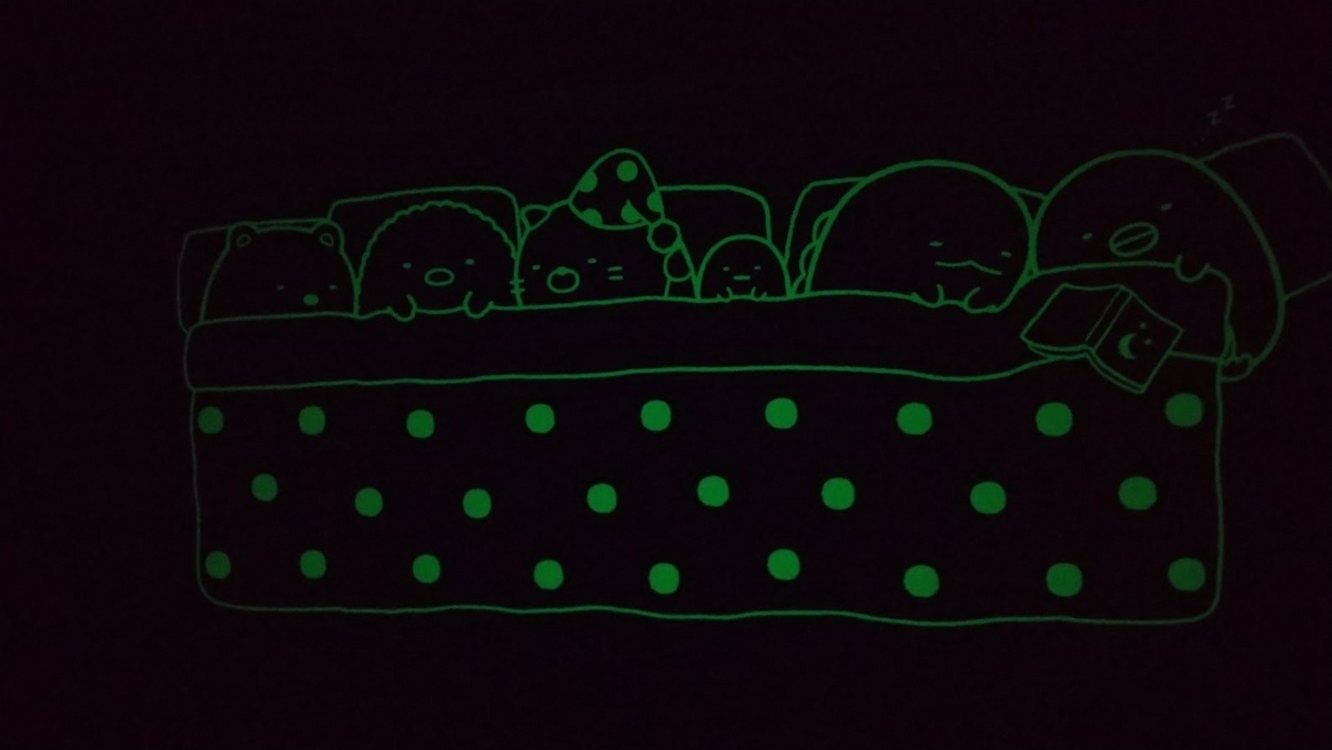 蛍光塗料が塗られていたのですね~。昼間は全然気づきませんでした💦 最後の最後まで楽しめるようにと、工夫の凝らされたお部屋に、家族一同大満足です。